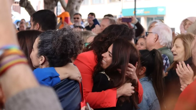 Entre abrazos, aplausos y palabras de aliento, Miranda ha sido arropada por decenas de personas que se han congregado para expresarle su respaldo frente al acuerdo entre Coalición Canaria, PP y VOX, que busca relevarla del cargo.