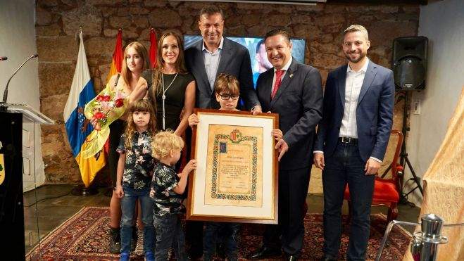 Finalmente, Mario Pestano, tras unas palabras de agradecimiento, recibió de manos del alcalde el título de Hijo Adoptivo de Arona. Al acto acudieron, además de familiares del deportista, los tres entrenadores que le han formado en su paso por Arona.