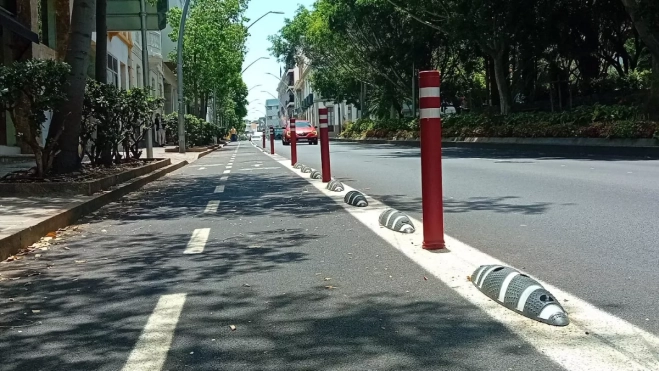 En la actualidad, los kilómetros de este carril están acompañados de unos pivotes que dificultan que sea utilizado para aparcamiento o como zona de carga y descarga, mientras se resuelve el recurso presentado al Supremo. Al respecto, el concejal ha matizado que “¡han dicho paren esa obra! y es lo que hemos hecho”.