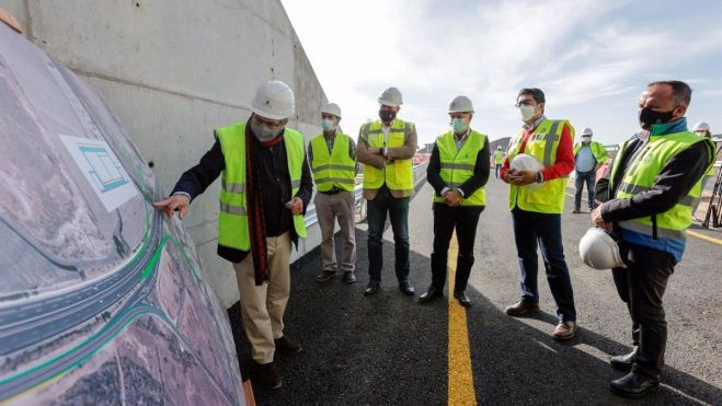 El consejero Franquis, junto al presidente del Cabildo de Tenerife, Pedro Martín; el vicepresidente y consejero insular de Obras Públicas, Enrique Arriaga; el alcalde de San Miguel de Abona, Arturo González, y el director general de Infraestructura Viaria, José Luis Delgado, supervisaron también el estado de las obras que han permitido poner en servicio dos de los cuatro ramales del enlace de Oroteanda, además de una nueva rotonda en el lado tierra de la TF-1, y de una conexión mediante una galería subterránea bajo la autovía que conecta a esta glorieta con la que ya está en uso en el lado mar.