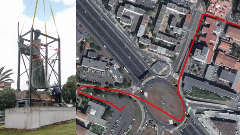 Pieza para aquí, pieza para allá, escultura para arriba y escultura para abajo. El anillo peatonal de la rotonda de Padre Anchieta, en La Laguna, volverá a modificar el tráfico nocturno este miércoles, en esta ocasión no por el traslado de una pieza, sino porque la escultura del santo volverá a la zona lagunera en la que se ubicaba.