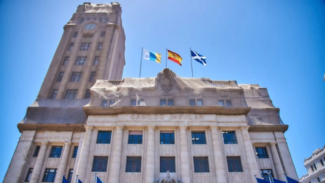 Desde hace varios años es difícil disfrutar de la arquitectura del Palacio Insular de Tenerife. El edificio, que alberga al Cabildo de Tenerife, ha estado cubierto con una malla protectora desde 2014 a causa de unas obras que nunca terminaron. Ahora, un año después de que el Tribunal Superior de Justicia de Canarias diera la razón al cabildo en un pleito contra la empresa adjudicataria, desde la corporación insular retomarán las obras de la fachada.