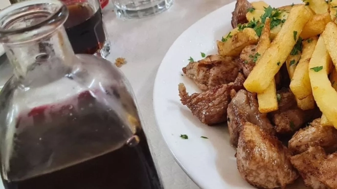 Todo ello regado con vino de la casa y papas, arrugadas o fritas, al gusto del comensal. Por cierto, mejor que guardes un huequito para el postre, ¿eres más de quesillo o de polvito uruguayo?