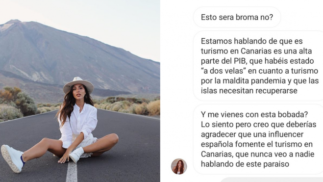 A ese mensaje, Raquel Reitx responde: "Esto será broma, ¿no? Estamos hablando de que el turismo en Canarias es una alta parte del PIB, que habéis estado a dos velas en cuanto a turismo por la maldita pandemia y que las islas necesitan recuperarse. ¿Y me vienes con esta bobada? Lo siento, pero creo que deberías agradecer que una influencer española fomente el turismo en Canarias, que nunca veo a nadie hablando de este paraíso".
