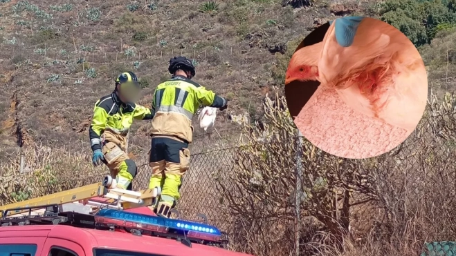 Bomberos de Tenerife y la Policía Local de El Sauzal rescataban este domingo a una gallina que había quedado incrustada en la malla de una finca y resultó herida de gravedad. Este caso pone de nuevo sobre la mesa un problema que no es novedad: la presencia constante de pollos y gallinas sueltos por las carreteras, incluso en los márgenes de la autopista.