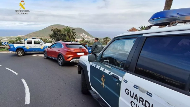 Minutos después, los agentes localizaron el vehículo, cuyos ocupantes circulaban a gran velocidad, realizando maniobras evasivas e invadiendo el carril contrario. Ante esta situación, y con la colaboración de la Policía Local de Buenavista del Norte, se estableció un dispositivo que permitió interceptar el coche y detener a sus ocupantes.