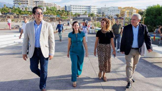 La consejera de Turismo, Industria y Comercio del Gobierno de Canarias, Yaiza Castilla, el presidente del Cabildo de Tenerife, Pedro Martín, el alcalde de San Miguel de Abona, Arturo González, y la directora insular de Turismo, Laura Castro, visitaron este jueves el nuevo paseo litoral de la Marina de San Miguel, cuyo objetivo era dotar a la zona de un paseo que puedan disfrutar tanto residentes como visitantes.