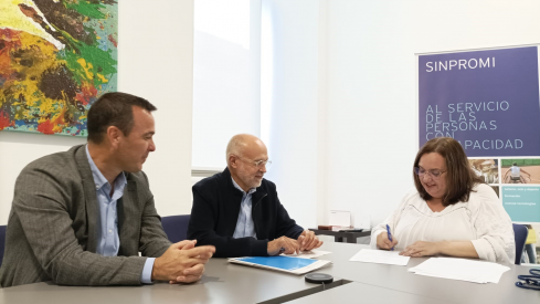 La vicepresidenta tercera y consejera insular de Acción Social, Marián Franquet, que suscribió el convenio en presencia del coordinador del Grupo Incorpora en Canarias, Francisco Morales y el delegado en Canarias de Fundación La Caixa, Mauricio González, explicó que “esta renovación supone el reconocimiento y apoyo de las acciones que desarrollamos desde Sinpromi, a favor de la inclusión de la diversidad y del talento de las personas con discapacidad en las plantillas de las empresas”.