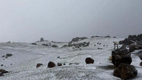 Tenerife ha procedido en la mañana de este 26 de febrero al cierre preventivo de los accesos al Parque Nacional del Teide tras registrarse una nevada que ha dejado hasta tres centímetros de espesor en distintos puntos del espacio natural.