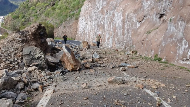 El Cabildo de Tenerife, a través de la Consejería de Carreteras, ha activado la ejecución inmediata de obras de emergencia en la carretera TF-82, a su paso por La Vetita, en el municipio de Santiago del Teide, tras los desprendimientos registrados en la zona durante la tarde del pasado martes, que provocaron el aplastamiento del capó de un coche por una roca del tamaño de un lavavajillas.