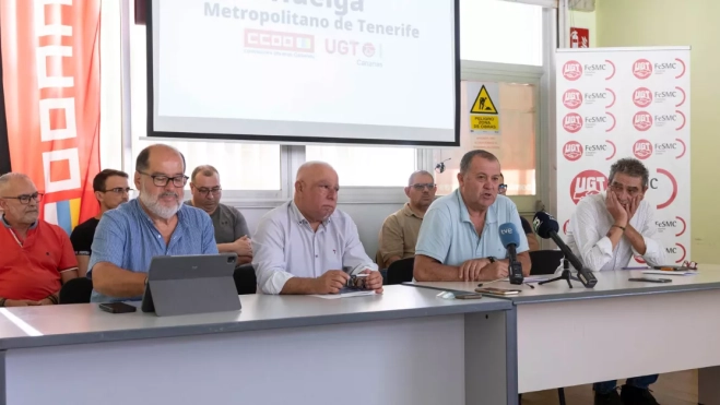 De momento no se ha presentado la denuncia, pero el procedimiento para llevar a la empresa pública Metropolitano de Tenerife a los juzgados ya corre por los departamentos jurídicos de Comisiones Obreras y UGT. Los sindicatos mayoritarios del comité de empresa han anunciado este viernes que ante la falta de voluntad para sustituir el agente cancerígeno arena de sílice y la ausencia de medidas para proteger a los trabajadores solo les queda la vía penal. Además aseguran que hay una “guerra de desgaste” debido a las elecciones sindicales de 2025 en el seno del comité.
