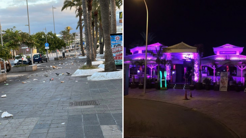 Este fin de semana la fiesta parece haberse alargado en Playa de las Américas debido a la alta ocupación turística y estar acabando el estío, y la resaca del domingo ha obligado a los servicios de limpieza a esperar hasta primeras horas de la mañana para retirar la basura, coincidiendo con la apertura de los negocios.