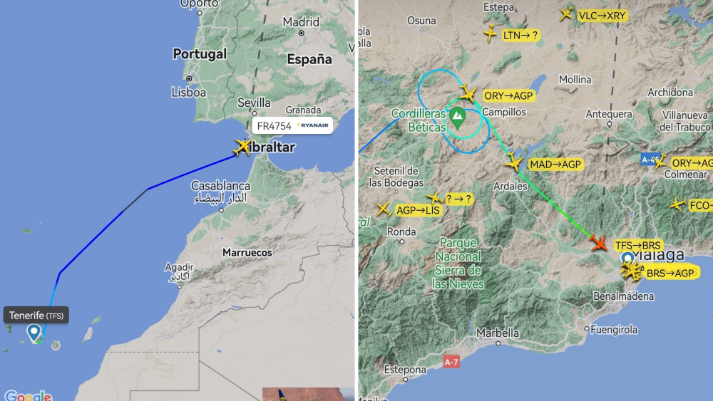 La aeronave, que llevaba más de dos horas en el aire en el momento de su aproximación al aeropuerto de Málaga, ha volado en círculos sobre la cordillera Bética antes de recibir el permiso para encarar el aeródromo, según se puede apreciar en las imágenes colgadas por los controladores.